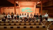 舞台の前で記念撮影(能楽堂の許可は得ています)