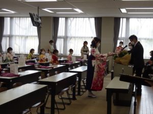 記念撮影のときには、学長先生に感謝の花束をお渡ししました