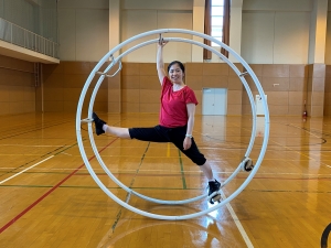 このラートという用具を使った競技大会も行われており、なんと古屋先生は学生時代に全日本ラート競技選手権大会に出場し、女子総合2位を獲得したことも!また、その世界大会にも出場経験があります。