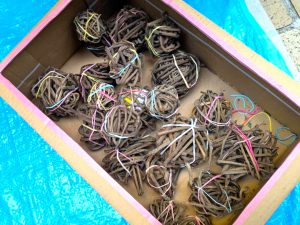 西武造園様の協力を得て採取した葛の蔓を丸めてボールにしました。年齢の異なる子供たちの手の大きさに合わせて色々な大きさにしました。